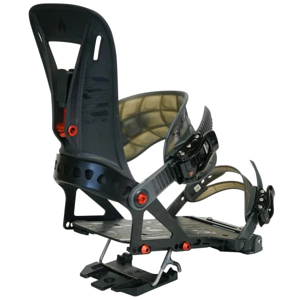 Mit den gleichen Vorzügen wie die Standard-Surge ST-Bindungen, d.h. T1-Technologie, Tesla Lock, solide Grundplatte, steifer Spoiler und raktive Pillow Line Straps ; diese Pro-Version ist mit Premium-Materialien und kundenspezifischen Versionen gelabelt. Die Bindung ist mit einem Surge Asym Rip ‚N‘ Flip Spoiler ausgestattet, der aus kohlefaserverstärktem Nylon, Pebax Kunststoff für die Riemen und 7075 Aluminium für die Fersenschlaufen besteht, was sie dünner und leichter macht. Neue ST-Touring-Halterungen werden hinzugefügt, wodurch die Ringe viermal länger halten als ihre Vorgängerversion aus Messing.